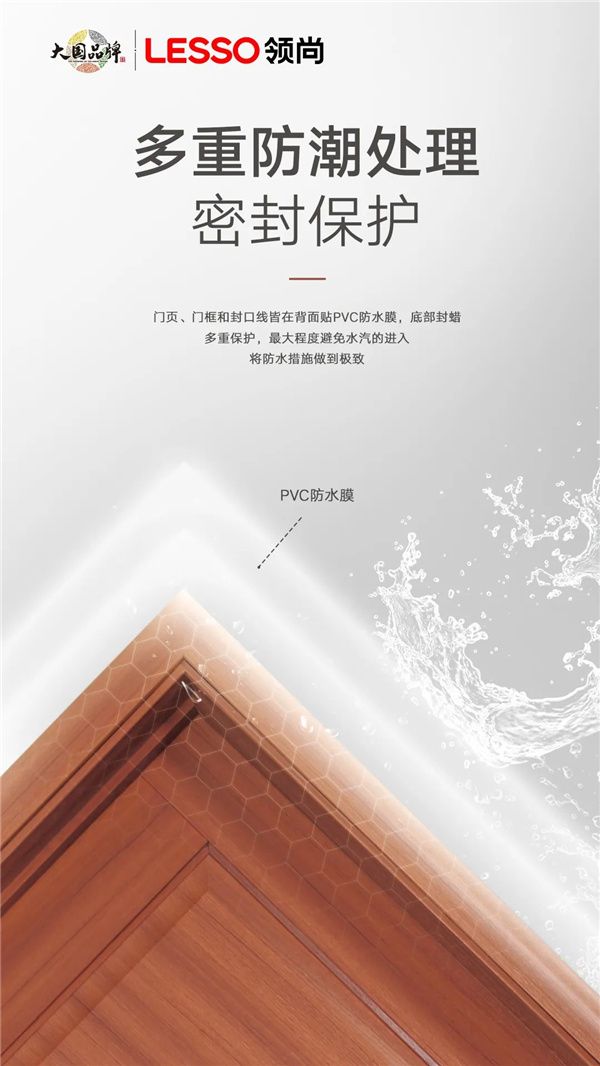 领尚木门多重防潮处理,密封保护,最大程度防止水汽入侵,给你更舒心的使用体验,让你在开合之间静享岁月安好。