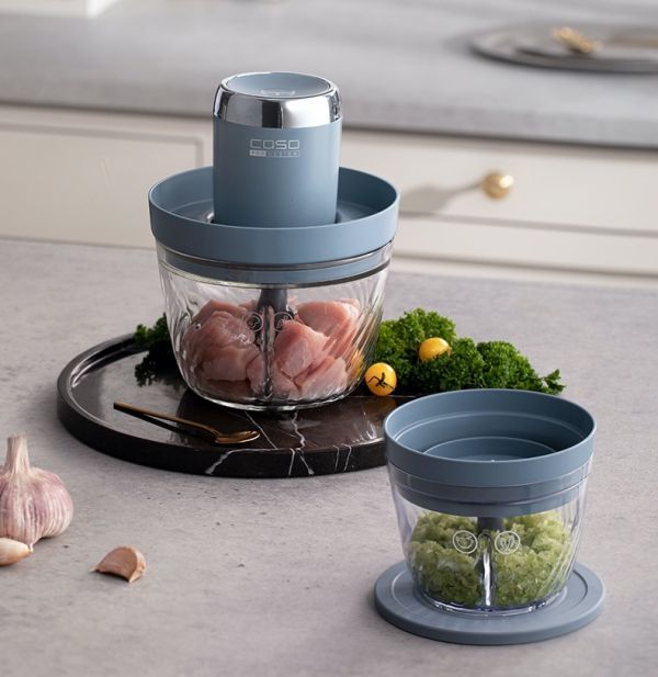 再说说卡梭的另一款产品,卡梭多功能绞肉机,与卡梭IH养生壶相同,它的设计也非常巧妙,采用了双碗双盖双刀头设计,再加上300W大功率的加持,2L的绞肉碗仅6秒就能绞肉500g,350ml的佐料碗制作起来更是高效,这下搅打馅料不仅比之前更轻松了,还简化了繁琐的备菜流程,专器专用让整个烹饪过程更加健康卫生!~