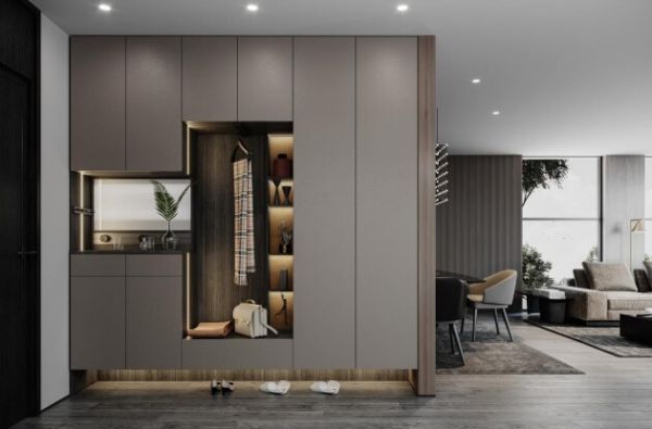 一柜到顶的柜子紧密贴合,不留一丝缝隙。