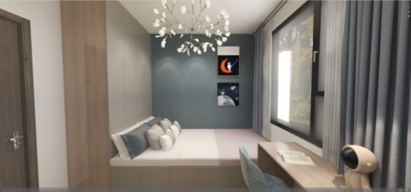 轻快的背景墙搭配整体收纳柜的简约线条,再加上灰色系地板,海尔全屋家居营造了空间整体的简约氛围,轻松就能感受到空间的美好与生活的饱满之处。
