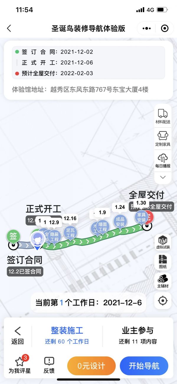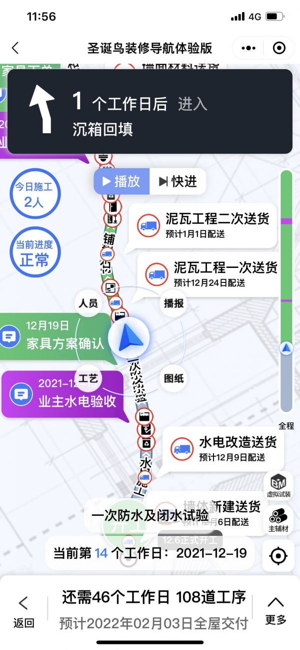 重点来了,圣诞鸟整装还有一个重磅的“神器”——装修导航,这是一款小程序,每个装修的业主在BIM模拟装修的时候就会生成专属自家的“装修导航”,只需要打开手机,通过这个小程序,就可以实现装修全程的轻松掌控。