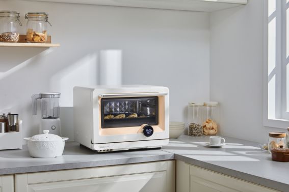 小户型趋势下厨电发展愈发呈现集约化趋势,美的mini微蒸烤集微蒸烤功能于一体,多样化功能的基础上对烹饪方式也做了升级。美的mini微蒸烤采用1500W旺火蒸汽功能,30秒快速直喷蒸汽实现360°瞬时锁鲜,保留食材营养不流失,搭配6档蒸汽温度调节,满足用户精细化烹饪需求。实用的微波速热功能,让营养早餐不再是上班族的一种奢侈。烘烤方面,100-230°C的广域温区,不仅能烤制鸡胸肉等肉类,专门为糕点烘焙定制的烹饪曲线,烤制出来的低脂燕麦杯更加蓬松绵软。值得一提的是, 美的mini微蒸烤内置全新特研的轻火程序——杂环胺减控烹饪曲线,在肉类烘烤过程能中有效抑制杂环胺的产生,减少肉类摄入后上火和溃疡的风险。与此同时,美的美居App内置200+定制云食谱,配备“一键烹饪”模式助你轻松搞定各式减脂大餐。