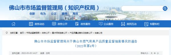 3月3日,广东省佛山市市场监管局发布关于佛山市燃气用具产品质量监督抽查情况的通告(2022年第4号)。通告称,根据相关规定,该局开展了2021年佛山市燃气用具产品质量监督抽查,抽样、检验技术服务工作由威凯检测技术有限公司承担。