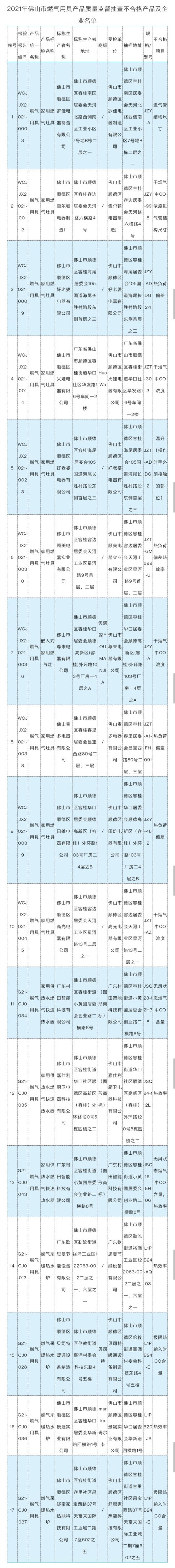 经检验,本次共发现16家企业生产的17款产品不合格。不合格项目主要有:热负荷偏差、干烟气中CO浓度、无风状态烟气中CO含量、极限热输入时CO含量、热效率、进气管结构尺寸、温升(操作时手必须接触的部位)等项目。