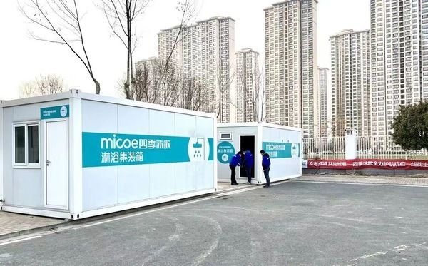 针对实际情况,四季沐歌迅速给出淋浴集装箱+空气能热水系统解决方案。淋浴集装箱为标准箱式方舱,自带热源、洗浴设施一应俱全、高度集成,3步整体安装,通水通电即可使用。