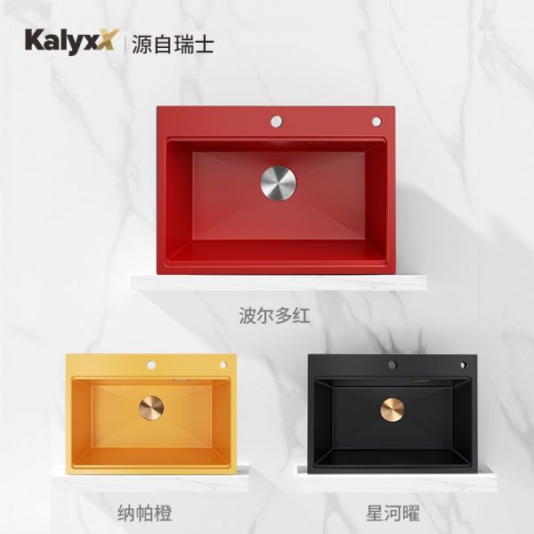 相比起颜色相对单一的不锈钢水槽来说,色彩多样的卡力克思(KalyxX)石英石水槽更能适配当下流行的奶油风、ins风等装修风格,星河曜、纳帕橙、波尔多红三种配色方案,迸发出无限的年轻活力,比起冰冷的金属质感,更能为厨房营造热烈的精致感。