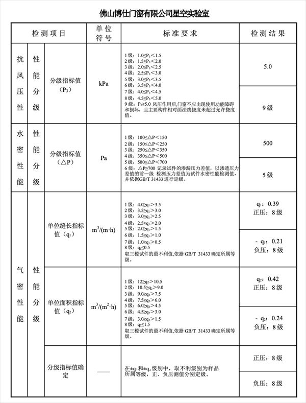 以上为博仕门窗V11系列产品检测报告