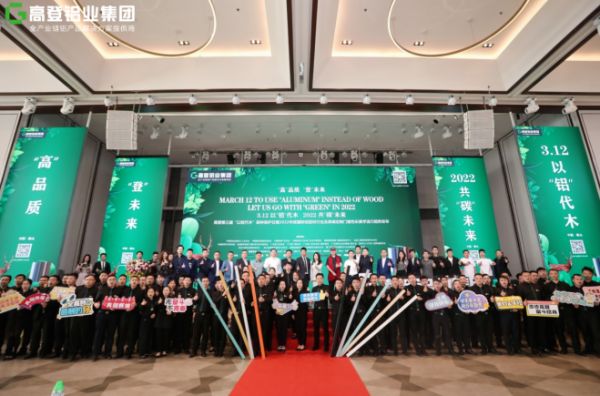 活动现场空前盛况,高登铝业集团总裁高振中先生,执行总裁李婧女士,来自全国各省、市的协会领导、行业专家,以及海内外客户荟萃一堂,见证3·12以“铝”代木,2022共“碳”未来。