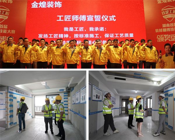 金煌装饰定期开展健康工艺擂台赛,针对全省的在建工地项目定期巡检,落地执行。