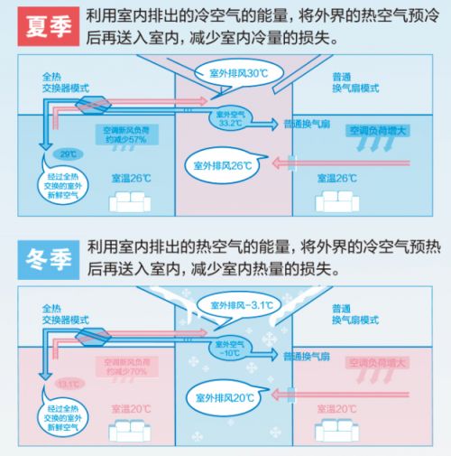 不仅如此,松下迷你全热交换器在节能上的表现也十分突出。它能够通过能量回收,减少通风换气带来的室内冷、热能量损失,以达到节能的效果,使送风温度更加接近室内温度,风感也更温和。比如现在这种冬春交替的季节,打开全热交换器之后,就可以利用室内排出的热空气能量,将外界的冷空气预热后送入室内,换气过程中一点也感受不到室外空气的寒冷。这样一来,还可以辅助空调节能。