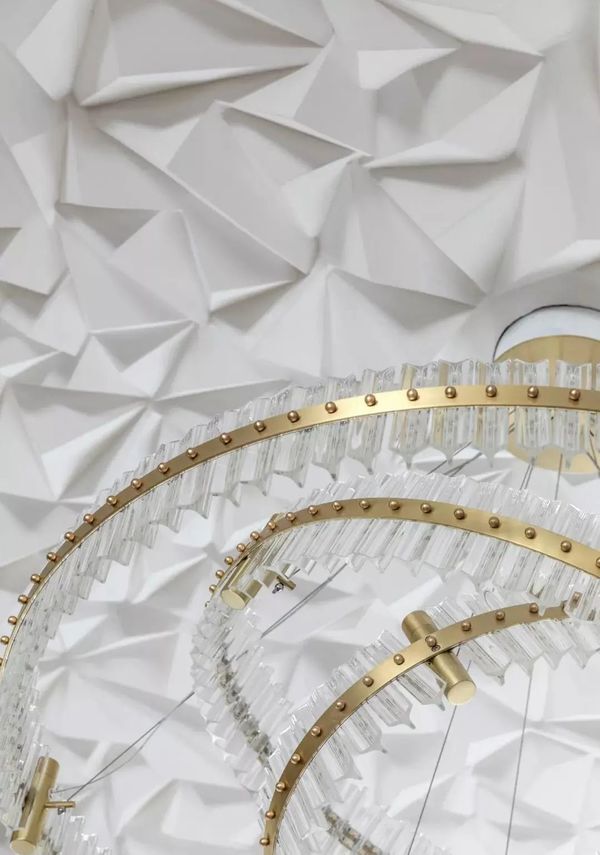 姚晓冰作品《河畔新世界》,便是以艺术思维做设计的具象说明。该案中,以姚晓冰为中心的主创团队充分利用空间层高的优势,最大程度实现块面感的分割与融合,通过高大的落地窗将外景揽入室内,设计感极少,但设计效果极强。据了解,该案曾被《瑞丽家居》刊发,理由是,此案有一个极为点睛之处——以艺术黄金分割的原理设计吊顶,开启了设计行业一种全新的创作思路。