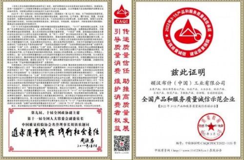 顿汉布什积极主动地配合中国质量检验检测协会的相关考验。2022年,收获协会颁发的“全国质量检验稳定合格产品”“全国产品和服务质量诚信领先品牌”“全国中央空调行业质量领先品牌”“全国产品和服务质量诚信示范企业”多项证书。品质值得信任,足以验证顿汉布什的产品可靠性保障。