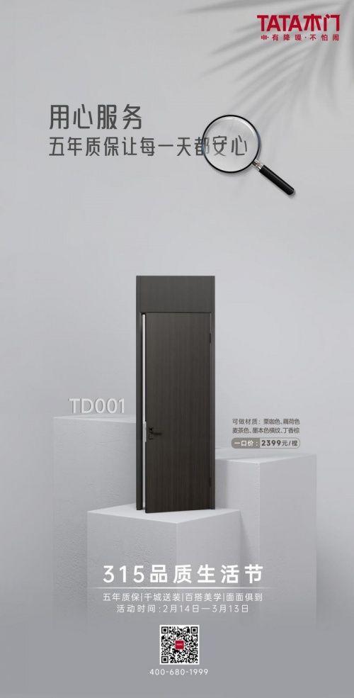 TATA木门对服务的认识与一般建材行业不同,除了对产品品质的硬性要求,服务也是他们尤为注重的环节,多年来TATA木门坚持“专业、负责”的战略性定位,认为服务是展现一个品牌高度的更直接方式,因此将服务工作放在非常重要的地位。此次315消费者权益日,TATA木门提出“诚信不止315,放心品质365”的口号,体现了其以用户为核心的服务理念。