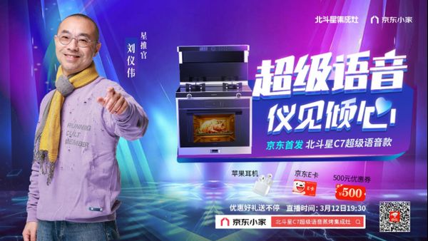 3月12日晚20:00,在美丽的海滨城市-山东日照,北斗星集成灶携手京东商城开启“超级语音 仪见倾心”新品发布会,国民美食主持人刘仪伟现场助阵。抖音、新浪微博、中关村在线、齐家网等10大平台在线同步见证。