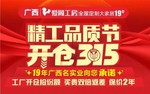 315国际消费者权益日即将来临,为回馈消费者对于品牌的信赖与认可,19年广西定制名实业——爱阁工房全屋定制,举办精工品质节,开仓315火热启动!彰显品牌多年来坚守的精工品质,高质交付态度。超高性价比套餐与精工品质交付,值得消费者的信赖。活动千万条,品质与实惠永远是消费者最为关注的焦点。315首选爱阁工房全屋定制,更多承诺让您安心体验全屋定制之旅。