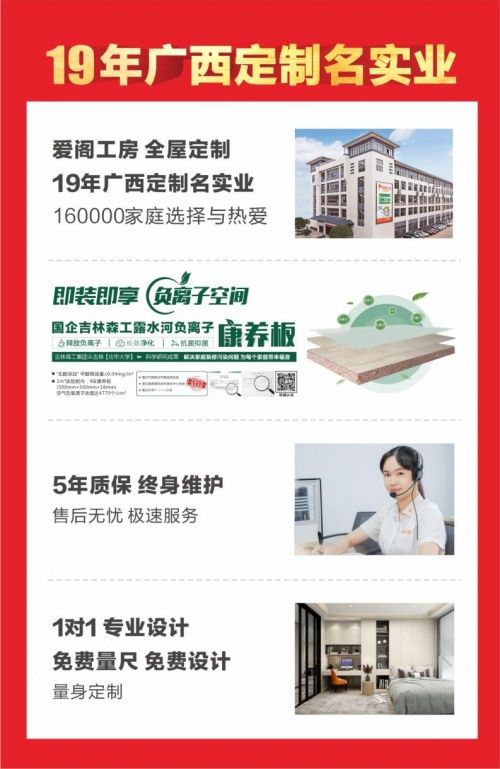 一直以来,爱阁工房都以服务与质量获得客户的认可与赞扬,也正是其对高质服务的培养和优良产品的铸造,成就了其目前其在广西全屋定制行业的领先地位。16万家庭信赖和选择爱阁工房,高颜值高品质高环保有保障!您的315,就是我们的365爱阁工房让您买得开心,用得放心,省钱省心享受高品质生活!