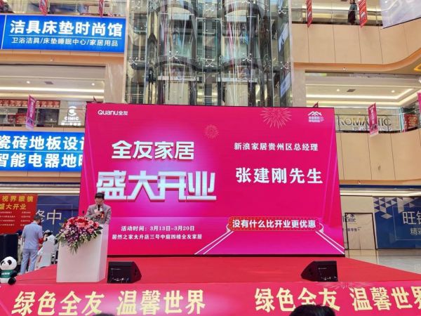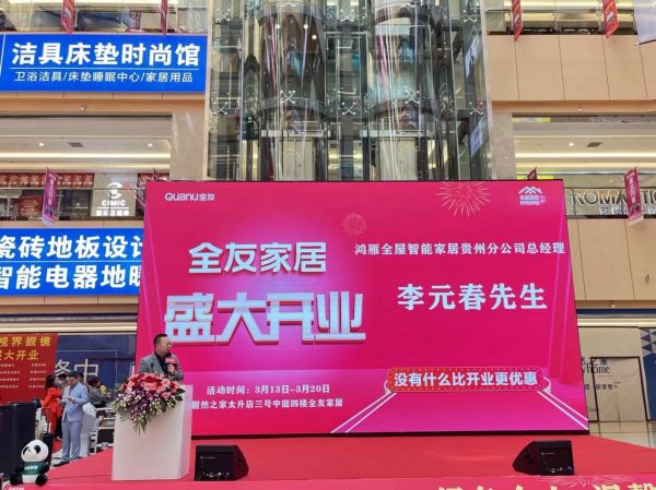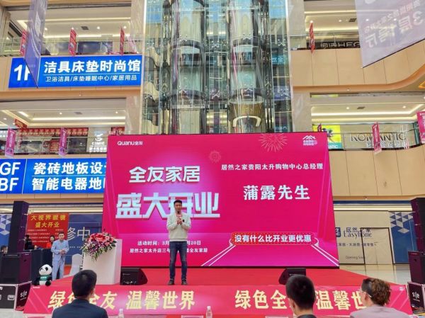 罗琨先生作为全友家居总部代表,对本次全友家居在贵阳居然之家太升购物中心的盛大开业表示祝贺!也嘱咐全友家居居然太升店作为全友家居高端形象店,做好服务,做好品质,获得更多的口碑,快速推进全友家居走进贵阳千家万户的进度。