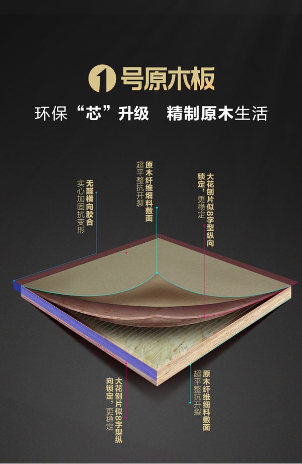 大王椰每一块板材都经历24道品质工序和质检环节,其中的3道自然养生工序,充分淡化产品甲醛含量;使用环保大豆胶,应用“超高温瞬间净化工艺”、“独创除甲醛技术”等除醛工艺,最大限度地祛除板材产品内残留的甲醛等有毒害物质。