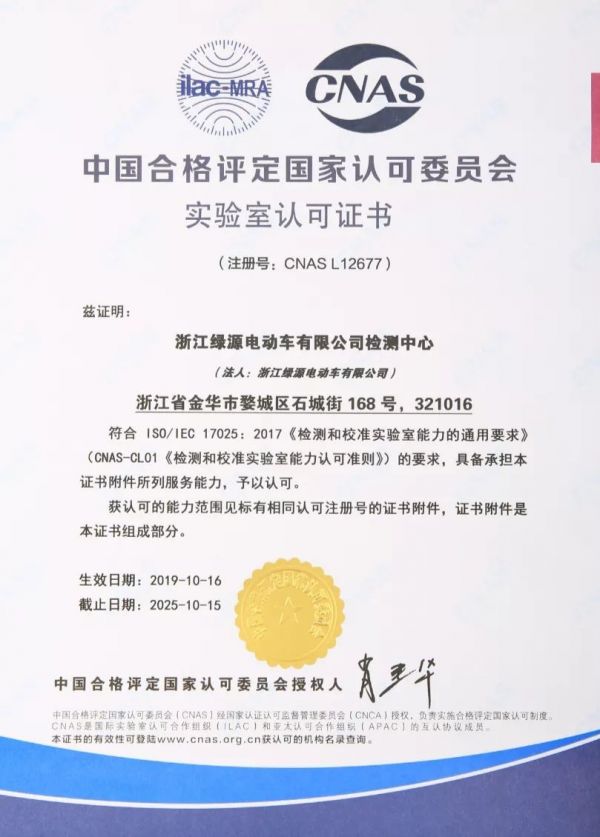 严苛检验电动车整车与部件,绿源CNAS认可实验室与国际互认