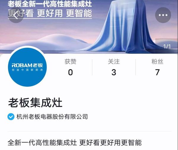 笔者注意到,前期,老板电器某高层在朋友圈发文中释出一张老板电器集成灶的海报。海报信息主题为“老板全新一代高性能集成灶 耀世而来 敬请启幕”,配图则为一张由幕布覆盖的集成灶产品。