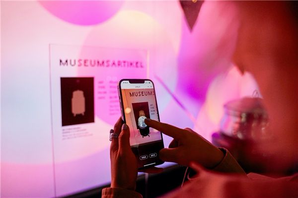 现场的AR视频互动装置让瑞族V-ZUG于1920年发明的第一台全金属洗衣机对话未来