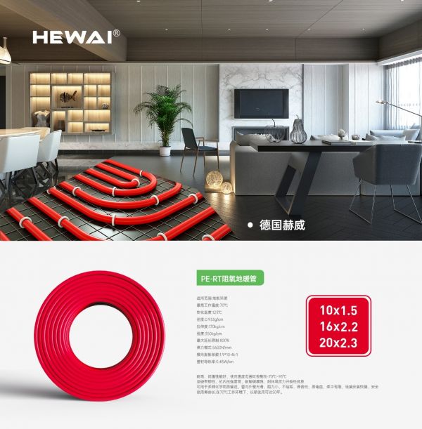 对于地暖末端盘管来说,良好的散热性才是节能的关键。同等条件下,散热性越好的地暖盘管需要设定的温度更低,相应的能耗也更节约。地暖盘管在地暖管材使用中,最为广泛的是德国赫威PE-RT阻氧管,其以耐高温性聚乙烯为原料,通过世界先进可靠的一次性共挤技术研制而成的一种采暖专用管道。不仅耐腐蚀、抗蠕变、导热系数的能力好,还拥有神奇的EVOH阻氧层,能有效阻止氧气渗入管道,避免管道氧化结垢,确保管材和设备使用寿命最长,更不必担心在施工及后续使用中出现破损事故,目前已被广泛铺遍了中国的诸多城市,承担着千家万户寒冬取暖的重任。