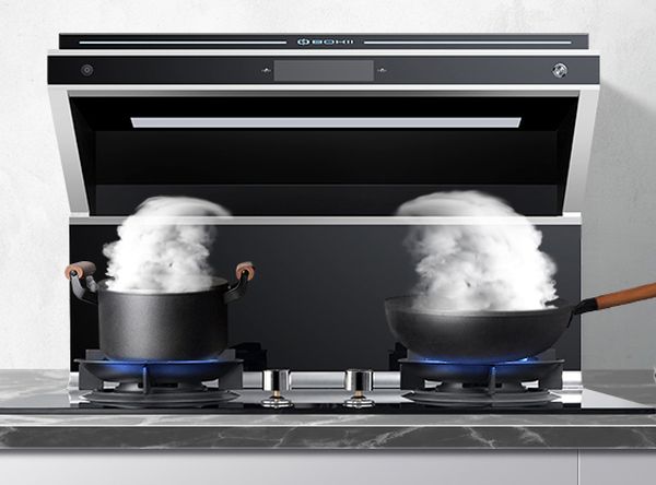博净分体式集成灶,侧吸下排式的吸油烟方式,吸油烟率高达99.6%以上。机头位于人体前下方,不碰头。集油盒位于底部,不滴油,尽情体验烹调乐趣,感受无烟健康的厨房。