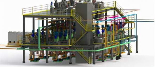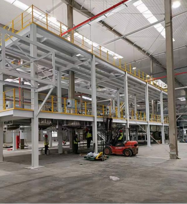 The production line includes process design, equipment manufacture, steel structure construction, on-site installation, pipeline instrumentation system, and automatic control system, etc. After the production line is completed, it will be the largest and most automated groutagent production line in China. The line consists of 2 A component production lines and 12 B component production lines.