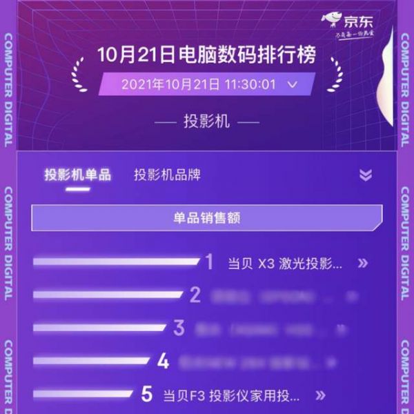 面对市场众多的新入局者,以及产品的快速更新迭代,当贝投影一路稳扎稳打、乘风破浪,接连推出的投影产品均获得用户的青睐,并成为行业标杆。其中,品牌旗下产品当贝F5、当贝NEW F3凭借高配置、高性价比,在发售之初就成为全网热销爆款。当贝激光投影X3创新性地将激光光源引入到家用微投中,在高亮投影市场中占据最大份额,产品在重要活动节点销额连续霸榜第一,严重缺货的情况下,仍能持续位列行业前端。