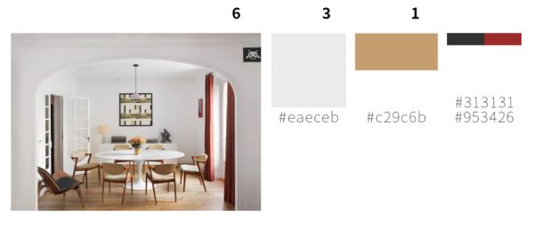 将空间的颜色分成背景色——60%,主体色——30%,以及点缀色——10%。
