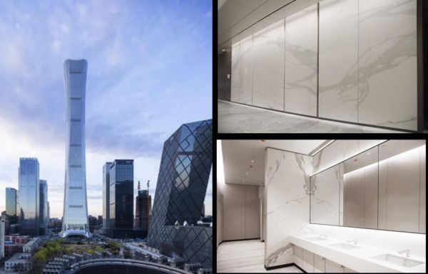 之所以在2017年这个时节点,其关键信号是德赛斯成功将岩板品类打进全国瞩目的「中国尊」项目,从80个标准层电梯厅及卫生间中拿下逾60层,成为最大赢家。「中国尊」项目自开工就关注度极高,其建造及选材标准打破多个世界纪录,评审之严苛,建造细节要求之繁复更是近十年来超高层建筑之最,而这一关键项目选用了岩板,提震了整个行业的信心,岩板的春天自此而来。