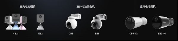 智能家居摄像机能为用户提供以可视化安全为基础的关爱、沟通、分享等服务。基于在电池类产品上的技术积累,萤石已经有了较为齐全的电池产品线布局,本次发布会带来了5款电池类新品,分别为:室内全无线电池相机马卡龙Mini版CB2和极致灰版EB2、室外电池云台摄像机CB8、室外电池4G筒机白色版CB3和极致灰版EB3,均具备无需拉线、安装便捷、维护性好、部署快速等出色特性。值得一提的是,CB3和EB3支持4G网络,采用eSIM,可以轻松驾驭房车、装修看管等不便取电取网的场景。