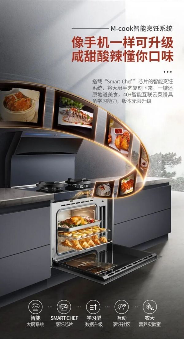 首先在其智能化方面,火星人Q6蒸烤一体集成灶搭载了自主研发的智能应用MCOOK智慧厨房平台,搭载社交平台,增强交互体验,同时还可以像手机一样定期升级系统,持续迭代更新,打造人性化用户体验,将厨电智能化与烹饪行为数字化合而为一,开启智慧烹饪体验。