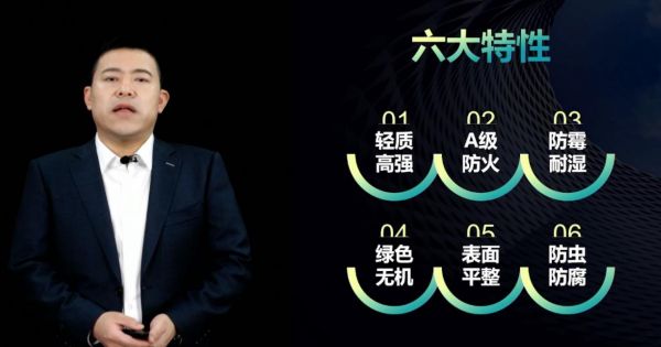“轻质高强、A级防火、防霉耐湿、绿色无机、表面平整、防虫防腐超强性能”,为了为了让更多嘉宾、业内人士、消费者更直观清楚了解新材料晶板、晶华板的性能优势,应用场景,中晶建材集团副总经理、中晶建材销售公司总经理李辉在线上进行了生动的产品介绍,二者六大特性也决定了晶板和晶华板的上限。