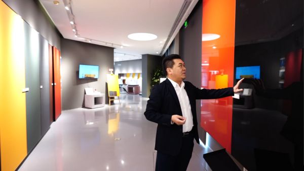 尽管此次的发布会采用了云上直播的方式,但为了更好地让观众感受到晶板、晶华板的强大性能与优越外观,中晶建材销售公司副总经理、应用研发中心负责人崔海龙带领观众浏览了产品展厅,更直观的感受产品。