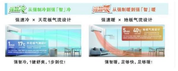 松下F1系列深挖用户痛点,具备强智冷暖功能,遇到高温天气,1分钟出风口可达17℃,搭配天花板气流设计,给你环抱式凉爽风,避免冷风直吹,仿佛置身于清凉的避暑胜地;强智暖守护寒冬时刻,无论外界温度如何变化,F1系列总能给你舒心温度,助你一键好梦。