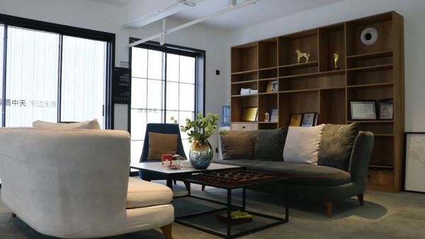 区别于传统以硬隔间区隔的商业空间,改以开放通透的设计手法,在室内植入展示之外的社交体验。由开放式的空间分割,创造弹性、多样化的空间界面。整体来看,不同机能的设定使用为展厅创造出可供休憩、交流、互动的社交角落,利用不同设计手法结合开放式空间的规划,创造了只属于绿盾中天品牌商业空间特有的差异性。