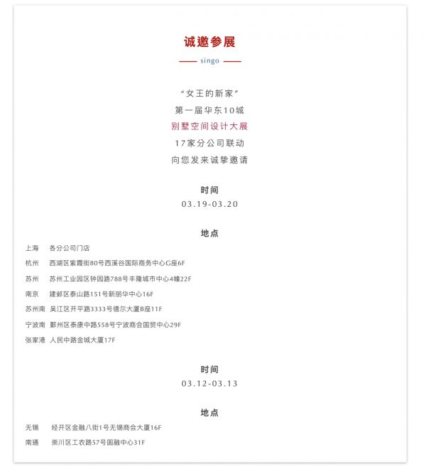 家装快讯| 星杰开启第一届华东10城别墅空间设计大展