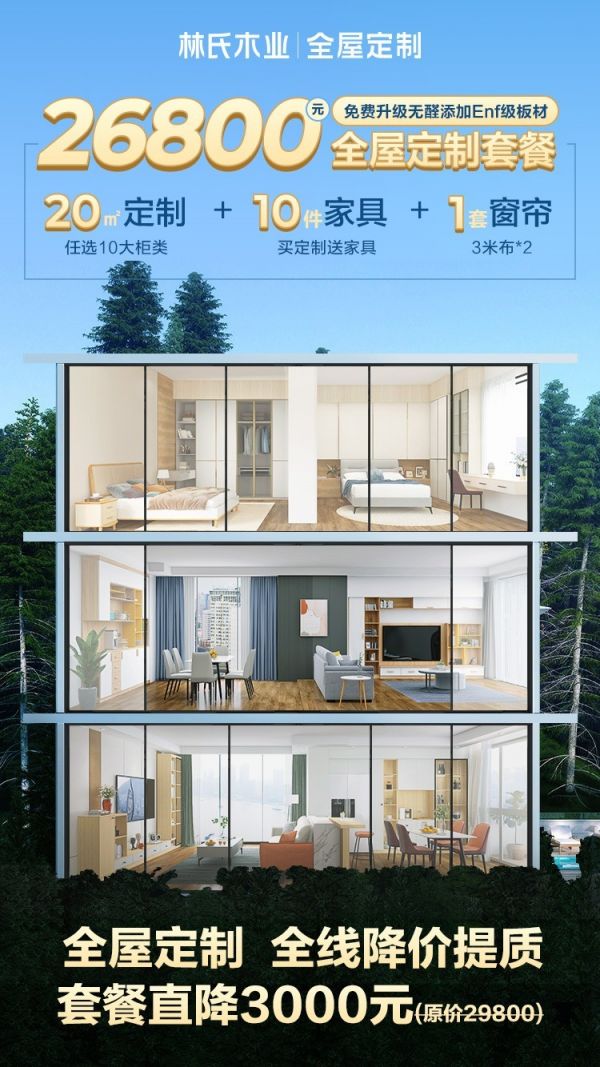 自2020年,在成都打造第一家全屋定制门店以来,林氏木业全屋定制业务呈现出蓬勃发展的态势。依托于“成品+定制+家居用品”的融合新业态,林氏木业为消费者打造了集个人品位、生活习惯、空间需求于一身的美好居住场所。而在全屋定制竞争日益激烈的“下半场”,林氏木业在精准直击、精心服务消费者痛点的基础上,通过主动降低产品价格,让利消费者,进一步升级用户对全屋定制行业的认知,全面开启全屋定制精质时代,夯实了其“好用不贵,自由搭配”的全屋定制价值主张。