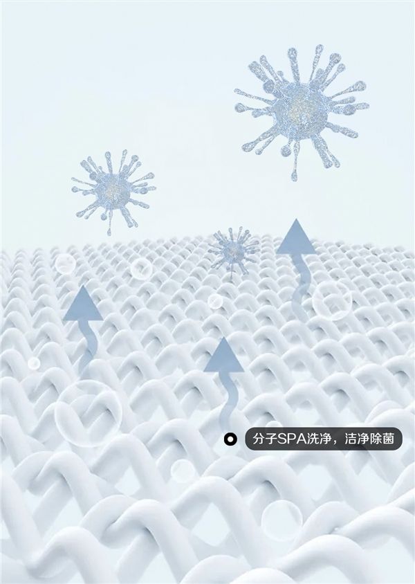 它搭载了分子SPA洗净技术,将水分子打散产生微米级的细雾,均匀快速的沁透洁净衣物,在清理表面污渍的同时,还能实现更深层次的杀菌,衣物防缠绕,更精致的呵护布料,避免衣物磨损、变形的情况出现。