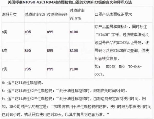 N95不是特定的产品名称。只要符合N95标准,并且通过NIOSH审查的产品就可以称为“N95型口罩”。(下图为美国标准)