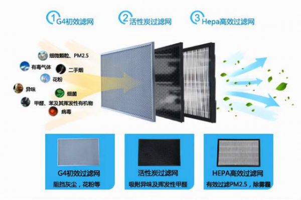 HEPA滤网过滤PM2.5颗粒效果最佳,同时还能捕捉霉菌、细菌、病毒等,可以说是滤网的核心所在。N95杯型口罩的95%较于HEPA滤网的99.97%可真是相形见绌了,并且手术室、动物实验室、航空等高洁净场所都用此材料,各位小主若是安装新风系统,有了这三层滤网保护后,在家只能接触到最新鲜或是更新鲜的空气,“混浊”“PM2.5”这些字眼通通扔在脑后。(参考下图)