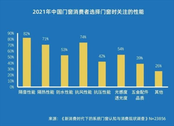 时下,消费者对于家装门窗的需求,已经从注重产品品质延伸至注重产品性能上。《2022中国全屋门窗普惠发展白皮书》研究说明,消费者对门窗产品功能有了更加明确的追求,隔音、保温、抗风等门窗性能成为首要诉求。