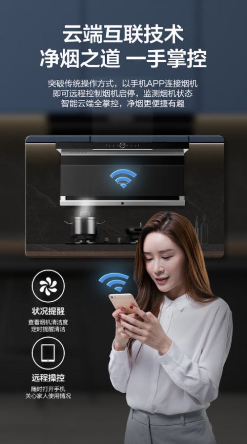 此外,L38TF设有WI-FI互联功能,用户可通过WI-FI互联达到人机远程互联的效果,仅需动动手指,即可远程控制烟机启停,实时监控油烟状态,并作出最佳的解决方案。