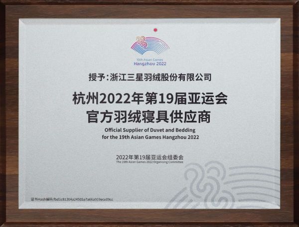 2021年7月23日,三星羽绒正式官宣成为杭州2022年第19届亚运会官方供应商。作为拥有三十多年品质沉淀的羽绒行业领军品牌,三星羽绒加入杭州亚运会大家庭后,将进一步为杭州亚运会筹办保驾护航,支持杭州亚运会宣传推广工作,助力杭州亚运会品牌建设。