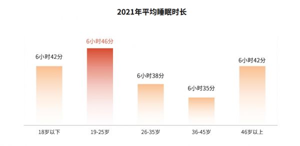 现代社会的快节奏和强压力,让睡眠变得更难以掌控,睡眠障碍日趋常见。《2022睡眠全景白皮书》报告显示,国人睡眠得分80分以上人群占比仅为25.4%,51.4%睡眠质量一般,伴有轻微睡眠问题,23.2%睡眠质量不达标,存在睡眠问题。其中,19-25岁的年轻群体更喜欢熬夜,同时所需的入睡时长更长,睡眠状况堪忧。