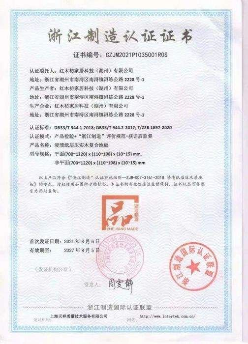 此外,红木枋产品始终保持着F4星环保标准,比E0级别环保标准更高,还屡次获得浙江制造品字标,以浙江制造业先进性的区域品牌形象引领着地板行业。真正实现了工艺绿色、材料绿色、产品绿色。在如此多优秀实力的傍身之下,可以预见申报的通过是水到渠成,届时红木枋绿色环保荣誉墙上将增添浓墨重彩的一笔。