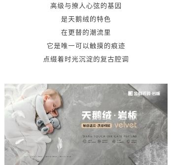 金科瓷砖·岩板秉承一如既往的创新精神,挖掘“天鹅绒”的内涵,以时尚华美的天鹅绒面料为产品创意灵感,舍弃了复杂的颜色,将其绵滑细腻的触感呈现在砖面,多一份温润柔和,营造出别致的家居空间。