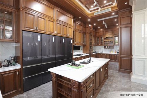 但深入探究就会发现,其实像卡萨帝这样的高端引领品牌,早就已经开始了场景化研究,致力于打造能更好融入全屋一体化装修的前置品牌。以她的嵌入式科技为例,早在2017年,卡萨帝冰箱就首创自由嵌入式设计,率先将冰箱与橱柜的散热边距缩小到2cm,树立冰箱品类的新标准;如今,通过升级零距离自由嵌科技,卡萨帝将冰箱两侧的散热间距压缩至0cm,侧面、背面均可实现“0闪缝”,家庭空间得到进一步释放,还带来浑然一体的纯粹感。再与厨房场景中的嵌入式烤箱、蒸箱、烟灶等联动,配合主动识别食材的智慧管夹科技和细胞级养鲜科技,厨房场景不仅更宽敞,还能更舒适。