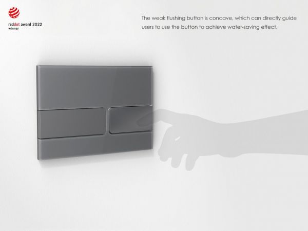 细节处见真章,与GENTLE龙头一同获奖的小牧SAVE马桶按键面板,则巧妙地利用视觉凹面引导使用者优先操作小冲,达到节水效果,唤醒人们对健康生活、爱惜资源的重视。